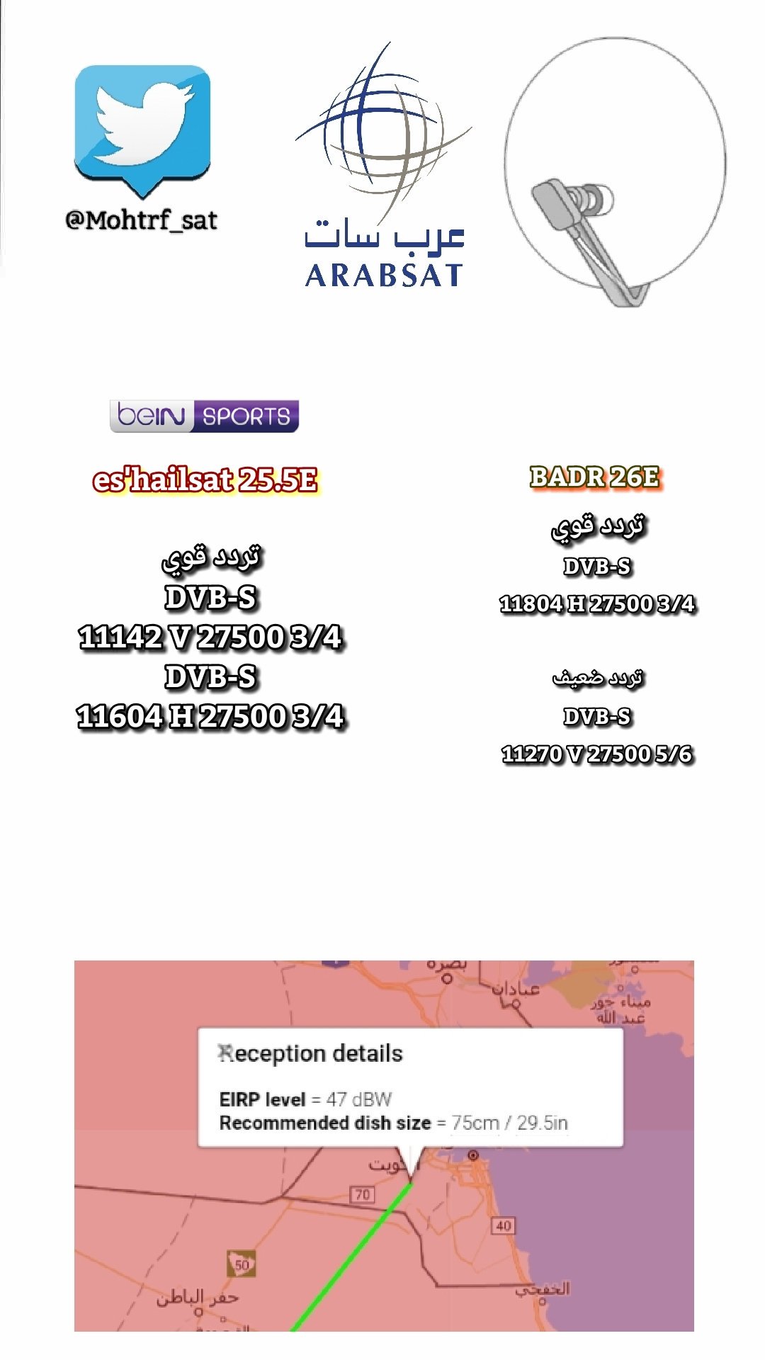 قمر بدر3 4 badr 3 4 عربسات سابق ا. 11727 أفقي 27500 4 3 أقوى تردد لاستقبال القمر. السلام عليكم احبتي اقدم لكم كيفية التقاط قمر بدر عربسات 26 شرقا على طبق بيضوي الشكل حجم الطول 80 سم العرض 72 سم. الموقع المداري 26 شرق ا.